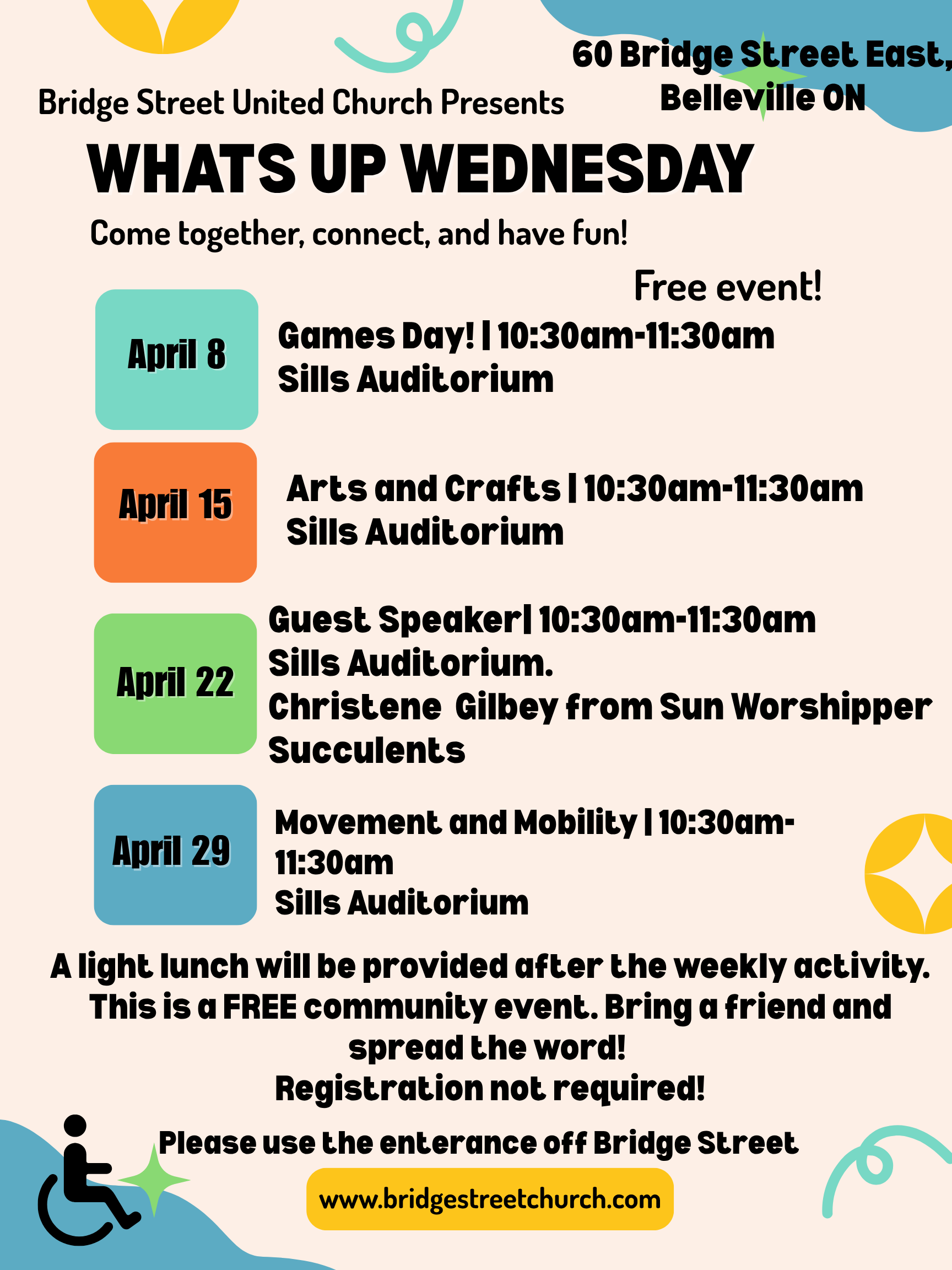 The bible study group of Bridge Street United Church meets weekly on Wednesday mornings at 8:30am. We follow the lectionary for passages to use in our study sessions and to guide our wide ranging and engaging discussions. Everyone is welcome.